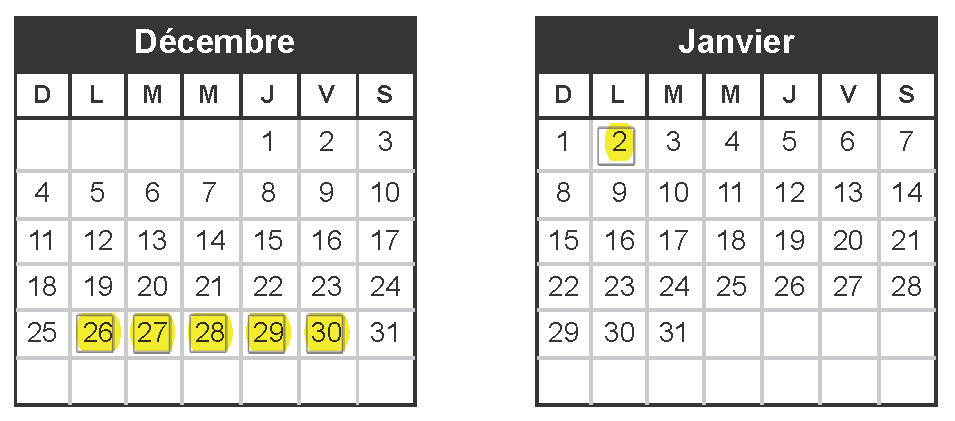 Événements : Holiday Schedule